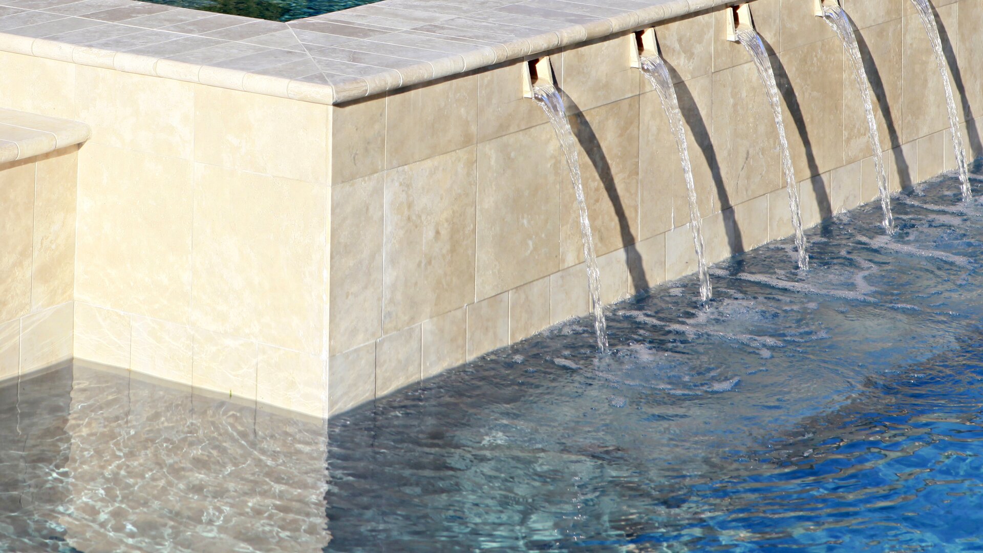 Natursteine aller Art werden gerne im Poolbereich oder in Schwimmbädern verwendet. Allerdings sind hier nicht nur die Steine, sondern auch die Dichtstoffe hohen Belastungen ausgesetzt. Chemische Einflüsse, wie beispielsweise Chlor und Reinigungsmittel können poröse Stellen und Schäden hervorrufen. Dauerhafte Nässe wirkt sich ebenfalls auf die verwendeten Materialien aus. Um unschöne Randzonenverschmutzungen zu umgehen, muss hier besonders sorgfältig gearbeitet werden. Damit die Fugen unter diesen erschwerten Bedingungen dauerhaft dichten, haben wir eigene Dichtstoffe für diesen Zweck entwickelt.
