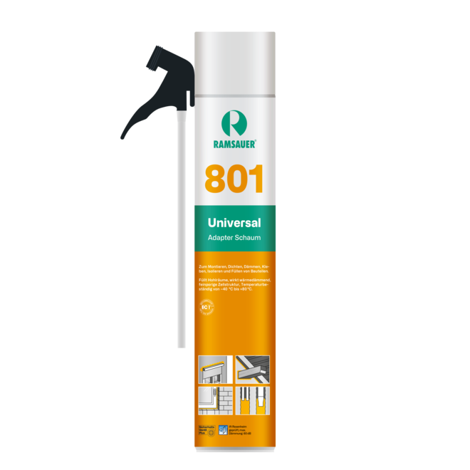 Die hervorragende Haftung auf vielen Materialien und ausgezeichnete Dämmwerte machen unseren 801 Universal Adapter Schaum zum Allrounder, wenn es um das Isolieren und Füllen von Fugen und Hohlräumen geht. Die anwenderfreundliche Dose mit Röhrchen ermöglicht ein sauberes und kontrolliertes Arbeiten. Der einkomponentige PU-Schaum zeichnet sich durch die überwiegend geschlossenzellige Beschaffenheit aus und härtet durch die Luftfeuchtigkeit aus. Nach dem Aushärten ist er halbhart, verrottungsfest, feuchtigkeitsbeständig und hält Temperaturen zwischen -40° C und +80 °C stand. Dadurch kann er bei auch für Fugen von Außentürenzargen verwendet werden.