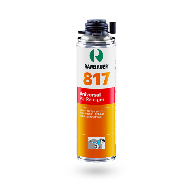817 Universal PU-Reiniger dient zum Entfernen von frischem Montageschaum auf verschmutzten Oberflächen und Kleidungsstücken sowie zur Reinigung und Vorbehandlung bei konstruktiven Verklebungen in der industriellen Fertigung und Reparatur. Löst Öle, Fette, verharzte Schmierstoffe, usw.