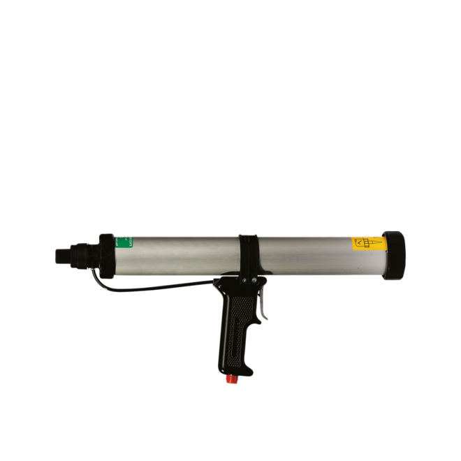 RM5 ist eine stabile Druckluftpresse mit präzisionsgeformtem Aluminiumrohr in bewährt robuster Bauweise. RM5 erfüllt die Anforderungen der Profis. Der Arbeitsdruck ist stufenlos an der Druckluftpresse regulierbar. Der ergonomisch gestaltete Pistolengriff ermöglicht bequeme Handhabung. Der Kolben wird von einer Sicherheitsschnur gehalten. Betriebsdruck 6,8 bar. Für 400/600 ml Folienbeutel.