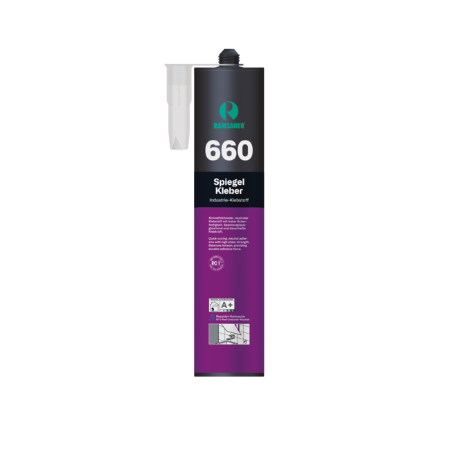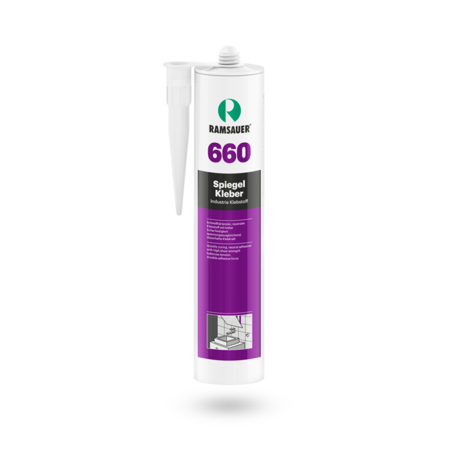 Those looking to attach a mirror easily and permanently are well advised to use our 660 Spiegel Kleber. Due to its exceptionally strong initial hold and fast curing, the mirror will be firmly attached to the substrate in next to no time. The ready-to-use, single-component, MS hybrid-based adhesive adheres to ceramics, glass, wood, concrete and plastic, and it can also be used on damp surfaces. 660 Spiegel Kleber does not contain silicones, solvents or isocyanates and will not damage the mirror’s coating. Thanks to its effective adhesive properties, the adhesive can also be used for acrylic mirrors, enamelled glass and Lacobel glass.