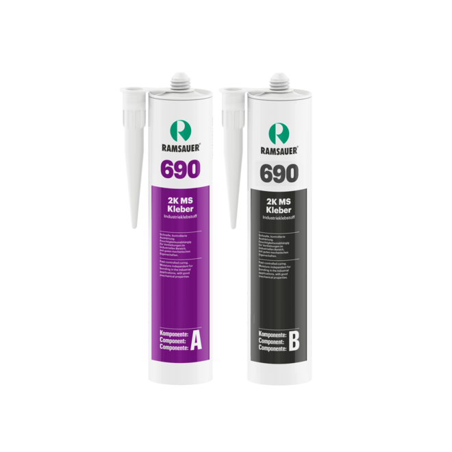 Our 690 2K MS Kleber is the way to go when things have to move fast on construction sites, in car and commercial vehicle construction or in industrial applications. This innovative adhesive and sealant is based on a special formula for rapid and controlled polymer curing, even with large adhesive gaps or sealant joints. As a result, it cures and can be subjected to the pressures of real-world use within four hours, even in the case of materials such as metals, plastics or glass. Its ability to cure through quickly as well as its impressive tensile strength and elongation at break allow for a wide range of applications, especially where other adhesives and sealants cause problems due to slower curing. Once it has cured, 690 2K MS Kleber is odourless, can be sanded and painted, and can be exposed to temperatures of up to 180°C for short periods of time.