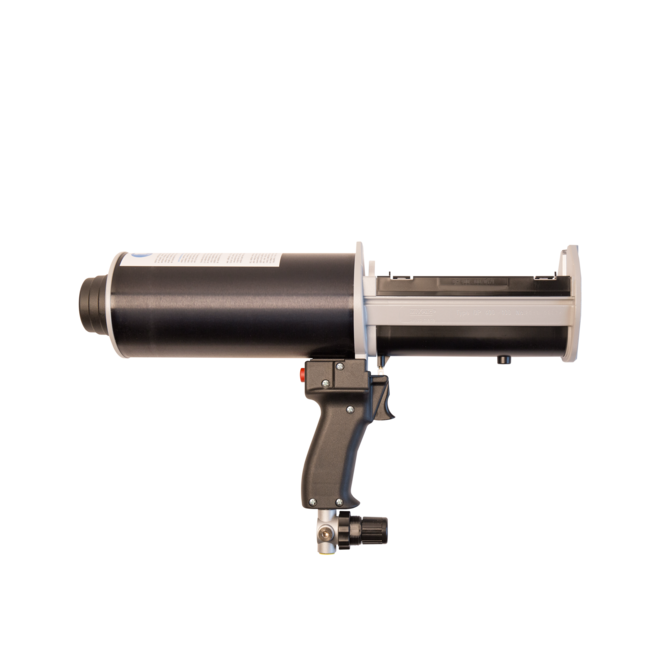 RM49 is a solidly built pneumatic sealant gun featuring a housing of alloyed aluminium and a wear-resistant mechanism. RM49 has been developed for processing two-component systems (490ml side-by-side cartridges) at a mixing ratio of 10:1. Particularly recommended for Ramsauer 670/671 2K SILIKON Kleber. The torsion-resistant design allows for constant and precise dosing. Extras: quick-action coupling with male thread (art. no. 9310025)
