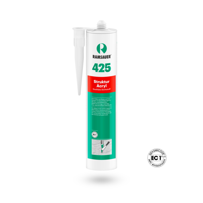Nel corso degli anni è normale che si formino crepe su muri e pareti. Il sigillante 425 Struktur Acryl è perfetto per questi lavori di riparazione. La sua buona spatolabilità e la rapida asciugatura rendono questo prodotto plastoelastico particolarmente piacevole da lavorare. A seconda della sua temperatura, la pellicola superficiale si forma già dopo un’ora. La sua speciale grana rende questo sigillante particolarmente indicato per la muratura con superfici strutturate, ad esempio per l’intonaco rustico o quello strutturale. Il risultato perfetto, quindi, è sempre garantito, anche dal punto di vista estetico!