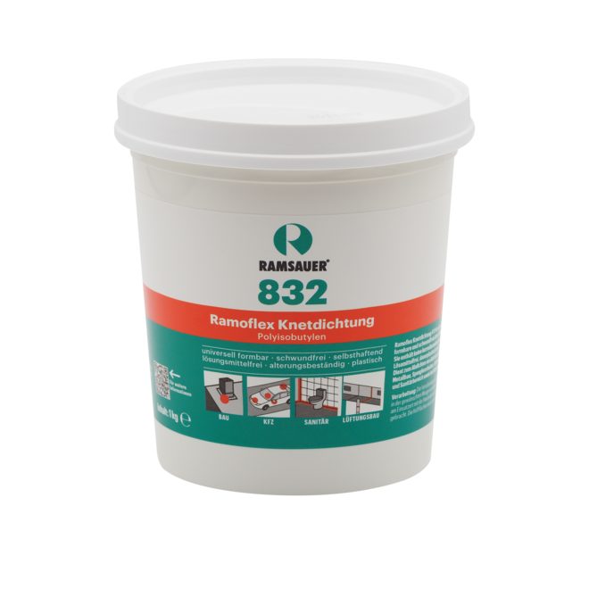 832 RAMOFLEX KNETDICHTUNG is een zelfklevende, kneedbare en krimpvrije kit. Het product bevat geen corroderende bestanddelen. Oplosmiddelvrij, duurzaam plastisch en bestand tegen veroudering.
