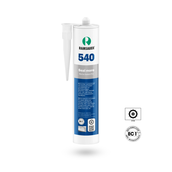 Door zijn hoge beginkleefkracht en snelle uitharding is 540 Seal more bijzonder geschikt voor sterk belaste verlijmingen in de scheepsbouw. Dankzij zijn uitstekende elasticiteit compenseert het materiaal bewegingen en is het bestand tegen trillingen. Een buitengewoon hechtingsspectrum maakt een breed scala van toepassingen mogelijk, zoals het verlijmen van spiegels in cabines. In tegenstelling tot silicone kan 540 Seal more worden overgeschilderd met in de handel verkrijgbare verf. Bovendien is de hoogwaardige lijm krimpvrij en weerbestendig. Het product is geurloos en vrij van isocyanaat en kan daarom ook binnenshuis worden gebruikt.