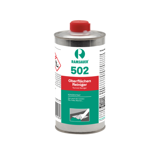 502 OBERFLÄCHENREINIGER dient als een snel vetoplossend middel op basis van oplosmiddelen. Het product kan gebruikt worden voor het reinigen en onderhouden van vuile afdichtingsoppervlakken.Verwijdert kitten, olie, siliconen, lijmen, teer en primers van gevoelige oppervlakken.