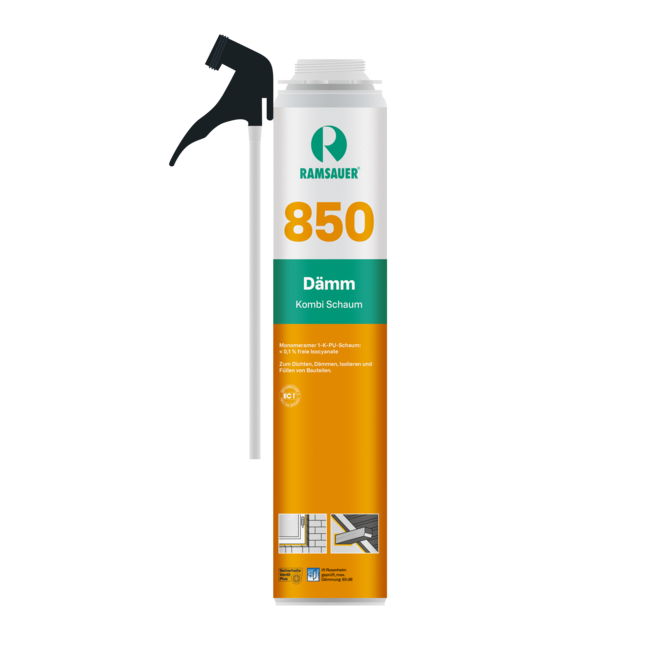 Met 850 Dämm Kombi Schaum is isolatie uiterst milieuvriendelijk en gebruiksvriendelijk. Dankzij de innovatieve formule van dit 1-componentige montageschuim ligt het restgehalte aan vrij isocyanaat bij minder dan 0,1 %. Het combinatieventieltje met geïntegreerd buisje maakt een bijzonder nauwkeurige toepassing mogelijk. Aansluitvoegen op ramen en rolluiken kunnen zo schoon en gecontroleerd worden afgedicht. Het isolatieschuim heeft het uitstekende thermische en akoestische eigenschappen. 850 Dämm Kombi Schaum hecht ideaal aan gangbare bouwmaterialen en is halfhard en overwegend geslotencellig wanneer het is uitgehard. Het is rotvrij en bestand tegen vocht en temperaturen van -40 °C tot +80 °C.